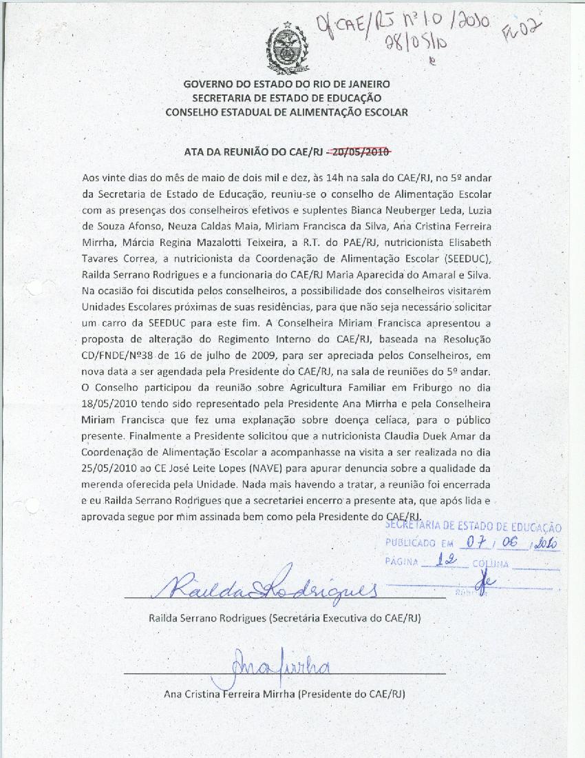 2a ATA DE REUNIÃO EXTRAORDINÁRIA - EM 10/06/2013